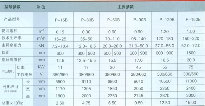 耙斗裝巖機(jī)參數(shù):
