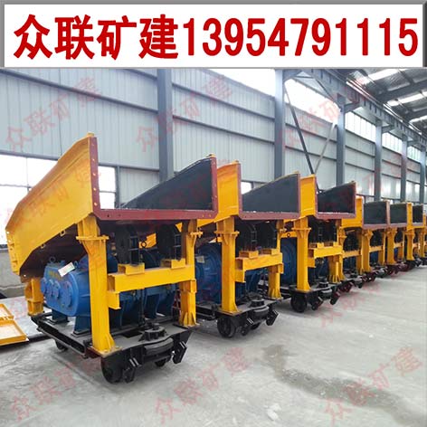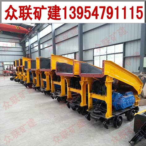 數(shù)臺(tái)耙斗裝巖機(jī)中間槽和耙斗裝車(chē)前實(shí)物圖(如下)