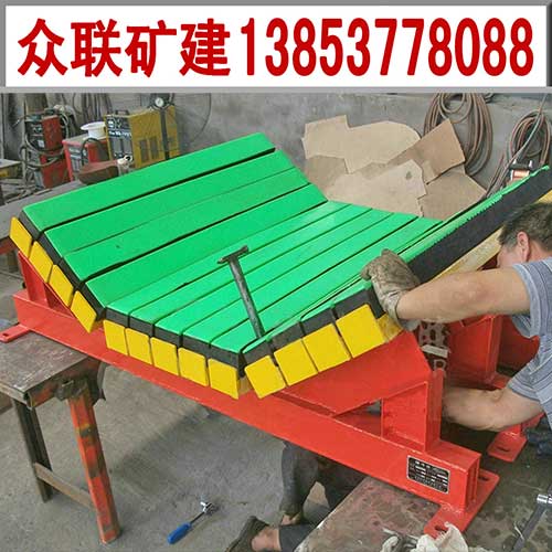 緩沖床主要用于替代緩沖托輥,對皮帶機輸送帶起保護作用,延長輸送帶的使用壽命。緩沖床是由緩沖條和支架組成的,緩沖條主要應(yīng)用優(yōu)良的高彈性特種橡膠層充分吸收物料下落時的沖擊力,大大降低了物料下落時對輸送帶的沖擊,真正改善物料點的受力狀況,采用特殊UHMW高分子聚乙烯表面,使輸送帶與緩沖條之間摩擦系數(shù)降到最低,且耐磨性好。緩沖床的使用保證了輸送帶的面與面的接觸,受力均勻,有效的防止了由于托輥斷裂脫落造成的皮帶縱向撕裂,同時大大降低了皮帶被銳器或尖銳物料穿透后縱向撕裂的概率。